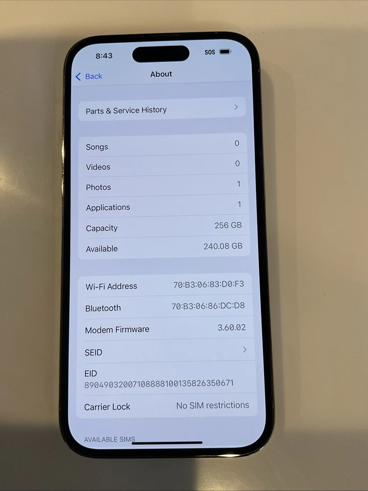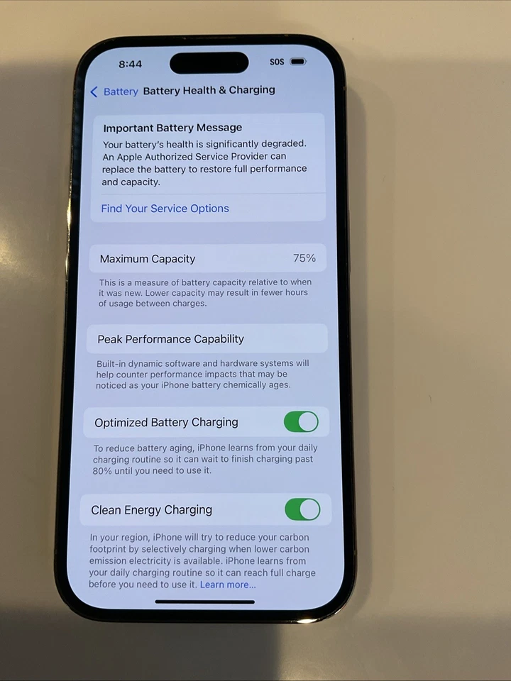 Apple iPhone 14 PRO 256GB GOLD UNLOCKED SLIGHTLY CRACKED BACK TURNS ON SCREEN IS GOOD has some scrathes LCD IS GOOD FACE ID WORKS ***BACK IS CRACKED*** CAMERA LENS IS GOOD FRONT CAMERAS WORKS BACK CAMERA WORKS MICROPHONE WORKS SPEAKER WORKS ***LOW BATTERY HEALTH*** BATTERY HEALTH 75% Carrier is UNLOCKED to ALL CARRIERS CLEAN ESN CHECK IMEI Number: 353115827607903 No ICLOUD account