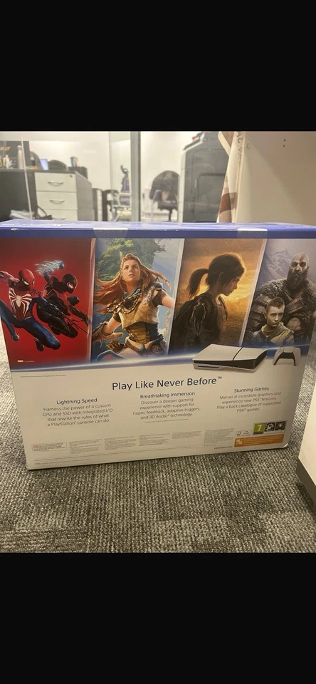 Condition Opened – never used: An item in excellent, new condition with no wear. The item may include original accessories and it is in a perfect condition Platform Sony PlayStation 5 MPN 1000040553-GB Item Length 10.2 in Item Depth 4.1 in Materials sourced from China Colour White Brand Sony Type Home Console Region Code Region Free Manufacturer Warranty 1 Year Item Height 15.4 in Model Sony PlayStation 5 Slim Blu-Ray Edition Connectivity HDMI Features Wi-Fi Capability Charger Included Yes Storage Capacity 1 TB Country of Origin China Resolution 4K (UHD)