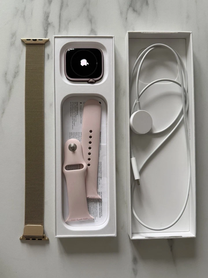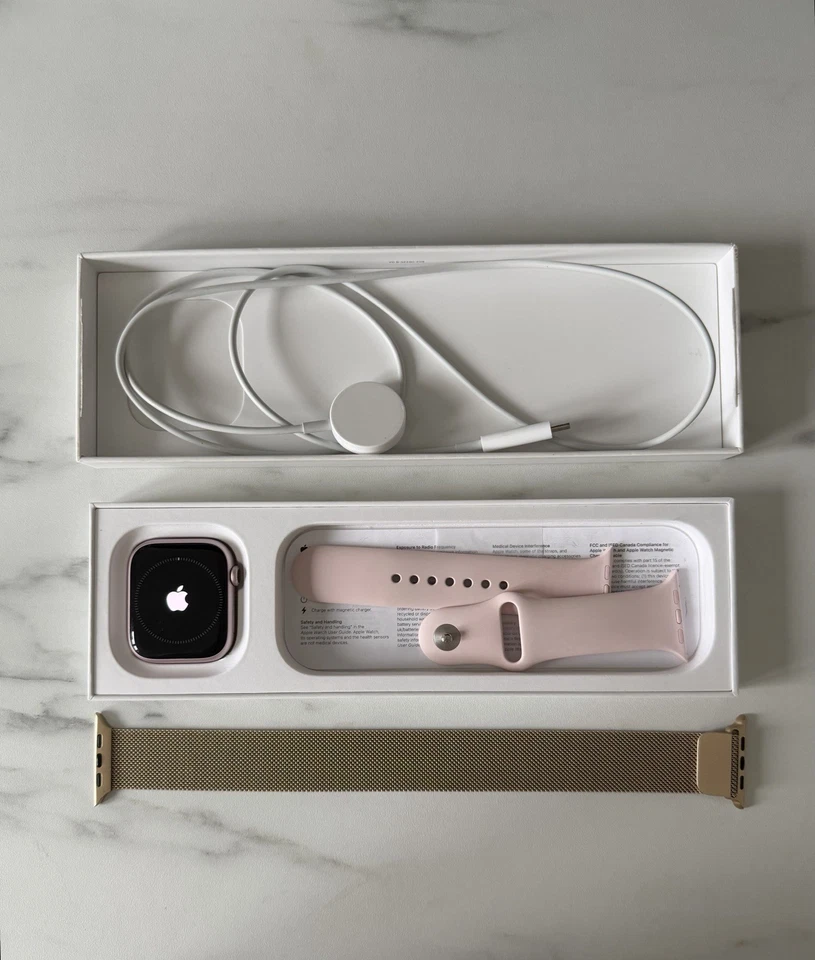 Condition Used “Really good condition, minimal tiny scratches on the screen but does not affect watch use at all” Band Colour Pink Brand Apple Series Apple Watch Series 9 Case Colour Pink Band Material Silicone Network Unlocked Model Apple Watch Series 9 Features GPS Case Size 45 mm Operating System Apple Watch OS Compatible Operating System iOS - Apple Case Material Aluminium Country of Origin China