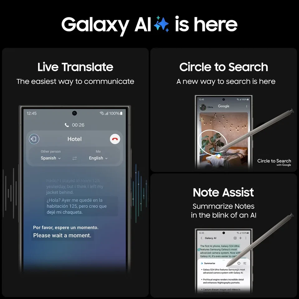 Excellent Working Order - 100% Fully Working and tested by expert technician - shows Medium signs of use. Processor Octa Core Screen Size 6.8 in Chipset Model Qualcomm SM8650-AC Snapdragon 8 Gen 3 Memory Card Type N/A Lock Status Factory Unlocked Model Number SM-S928U SIM Card Slot Single SIM Cellular Band 5G Colour Black Brand Samsung Manufacturer Warranty 1-Yesr Seller warranty Network Unlocked Model Samsung Galaxy S24 Ultra Style Bar Connectivity 5G, Bluetooth, Wi-Fi, NFC Features Water-Resistant, AMOLED Display, Wireless PowerShare, Quad Rear Camera, Ultra Wide-Angle Camera, Fingerprint Sensor, eSIM, Telephoto Lens, Wireless Charging, Stylus Operating System Android Storage Capacity 256GB,512GB,1TB Country/Region of Manufacture United States Contract Without Contract Camera Resolution 200.0 MP RAM 12 GB