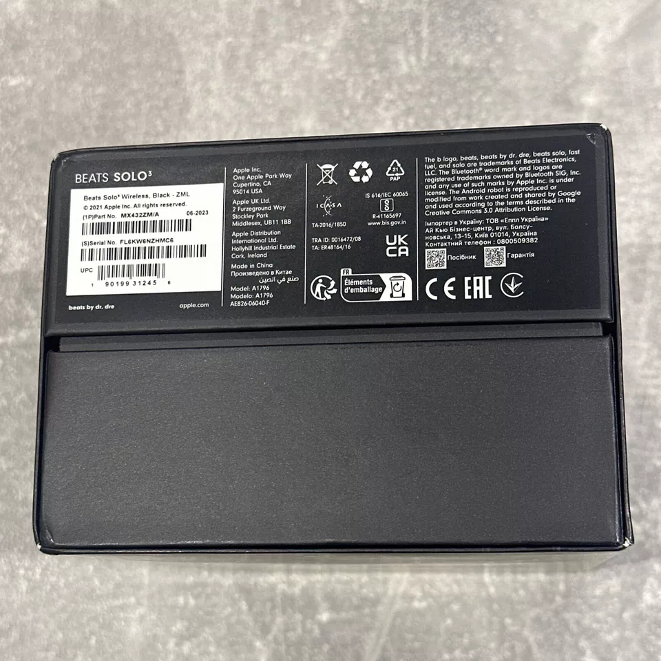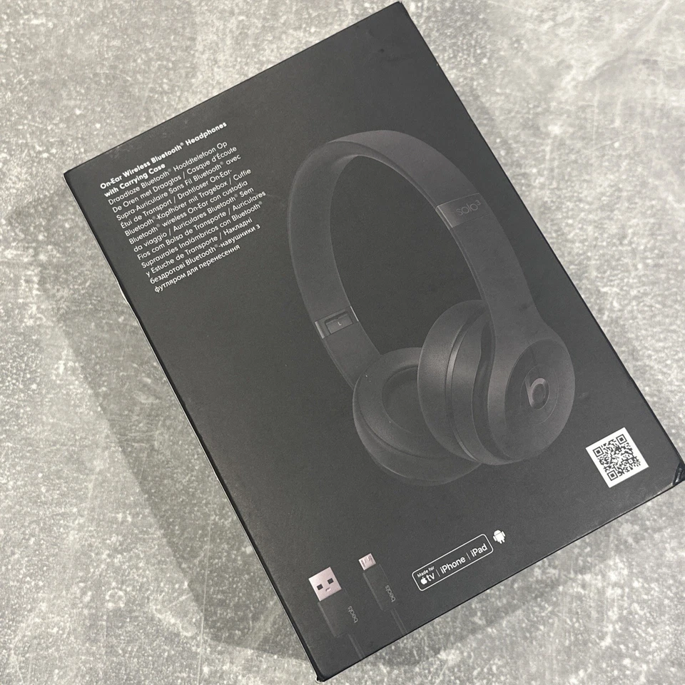 Condition Opened – never used Seller notes “As new in open box” Country of Origin China Brand Beats by Dr. Dre Form Factor Headband Type Ear-Pad (On the Ear) Number of Earpieces Single Wireless Technology Bluetooth Custom Bundle No Model Beats by Dr. Dre Solo3 Connectivity Wireless, 3.5mm (1/8 In), USB MPN MX432ZM/A Features Adjustable Headband, Foldable, In-Line Control Colour Black EAN 0190198105417
